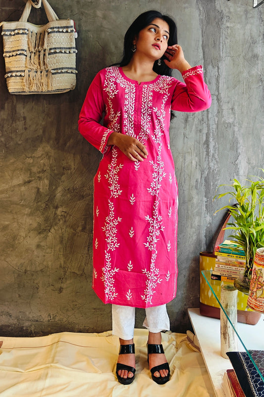 Rose Pink Long Chikankari Kurti