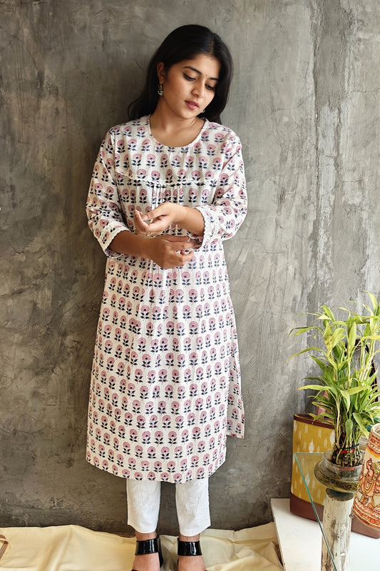 White Butta Jaipuri Block Print Kurti