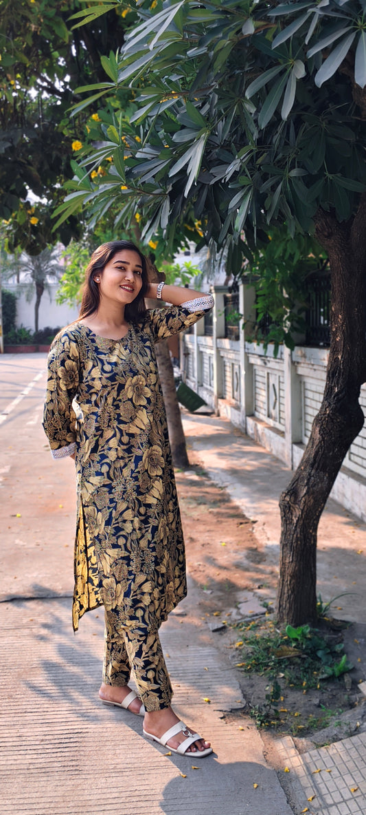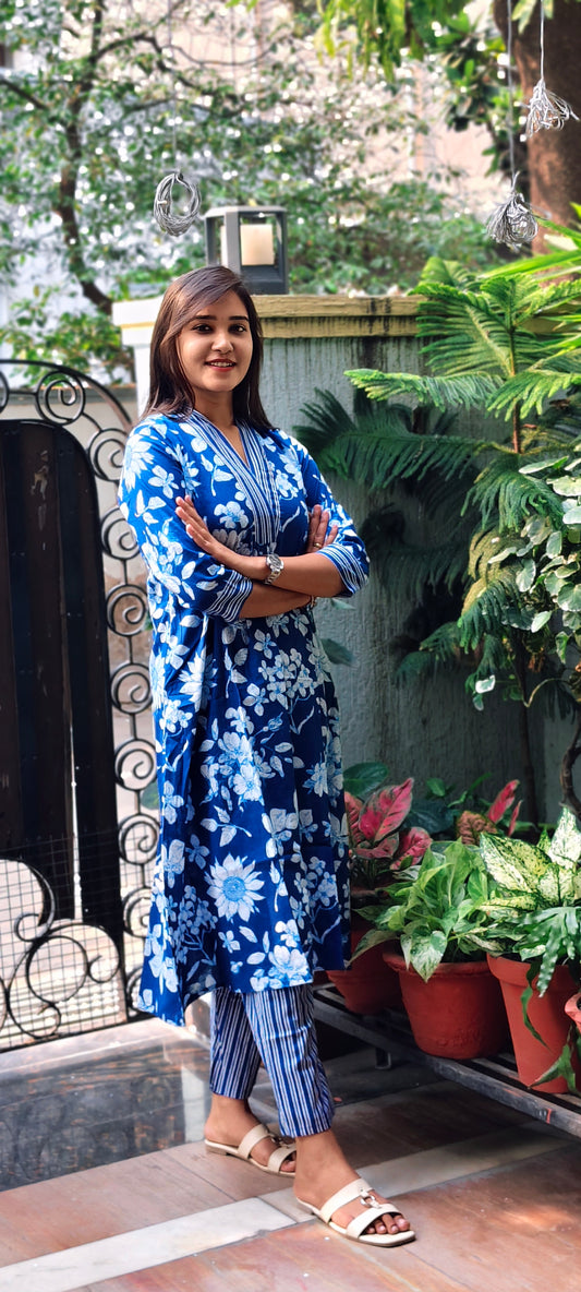 Indigo Floral Handloom Co-ord Set - Loomkar Raipur