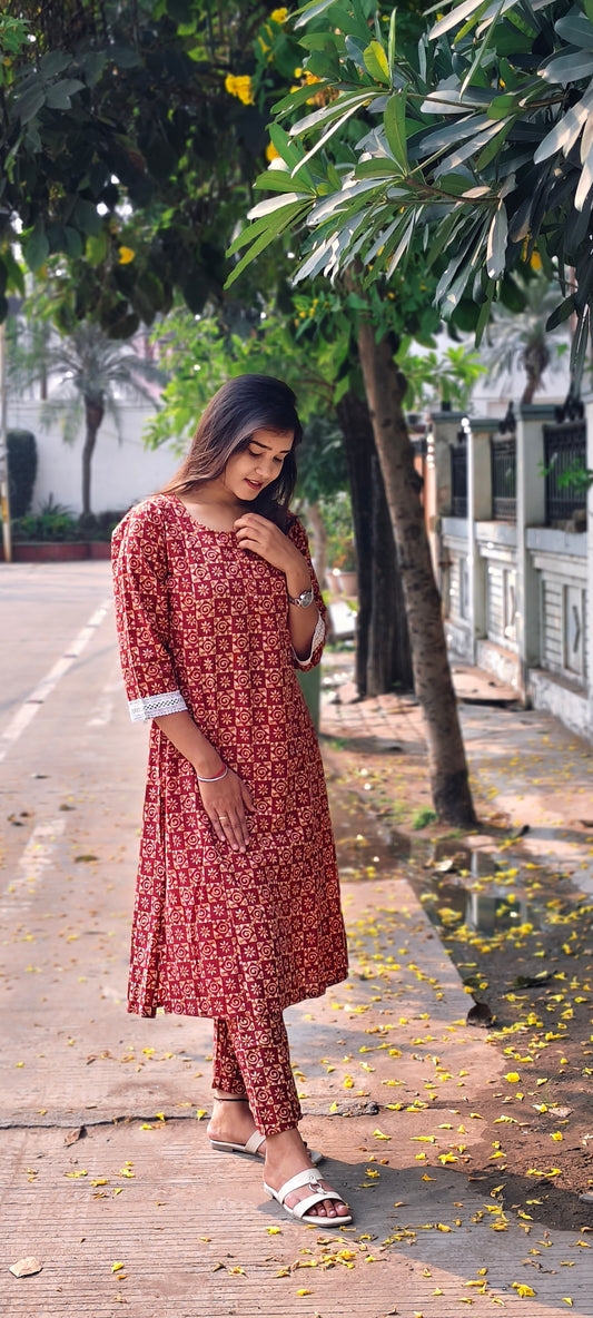 Rust Solid Color Hand Embroidery Co-Ord Set.